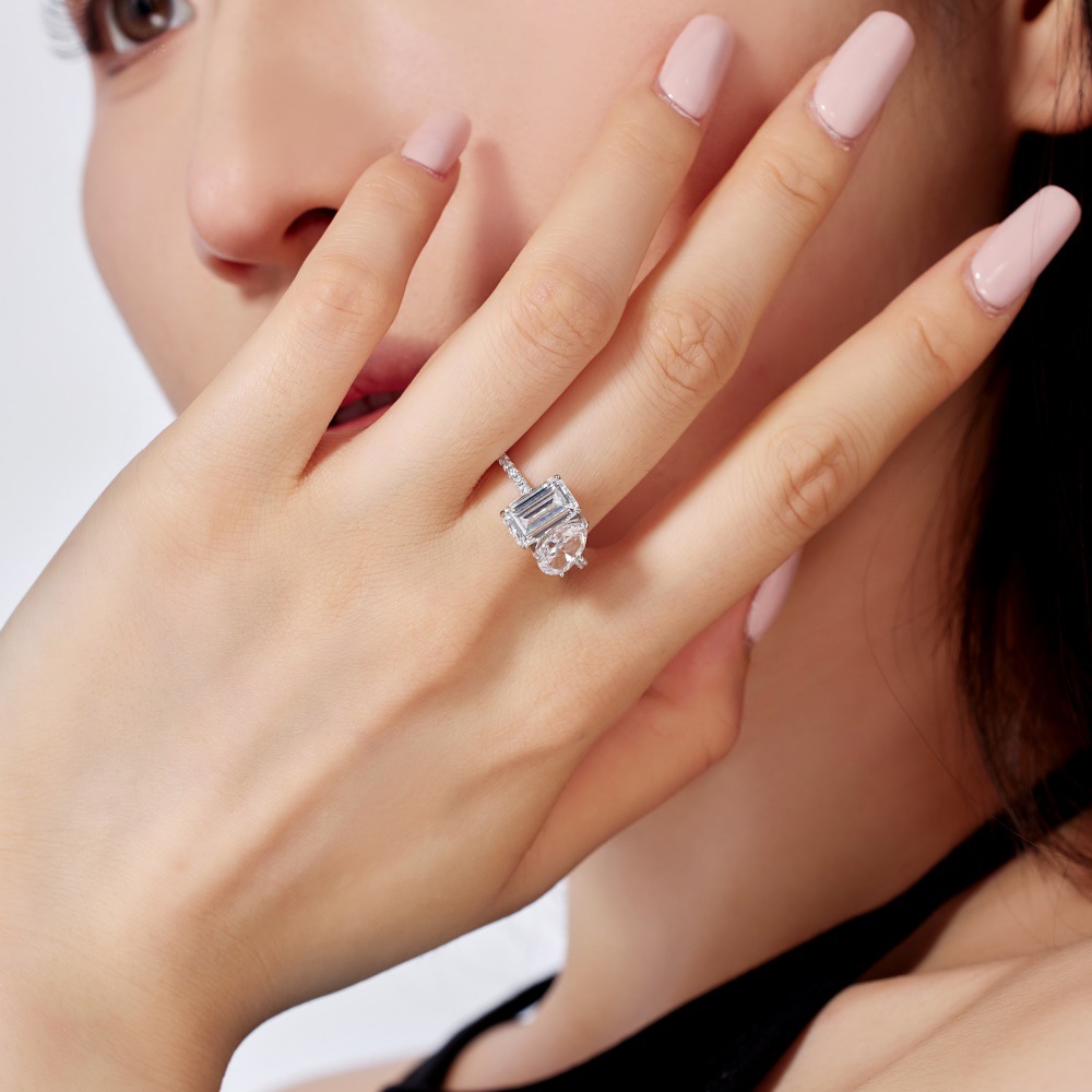 S925 Sterling Silver Ring Female Double Raw Stone Water Drop Geometry – ShreeBliss